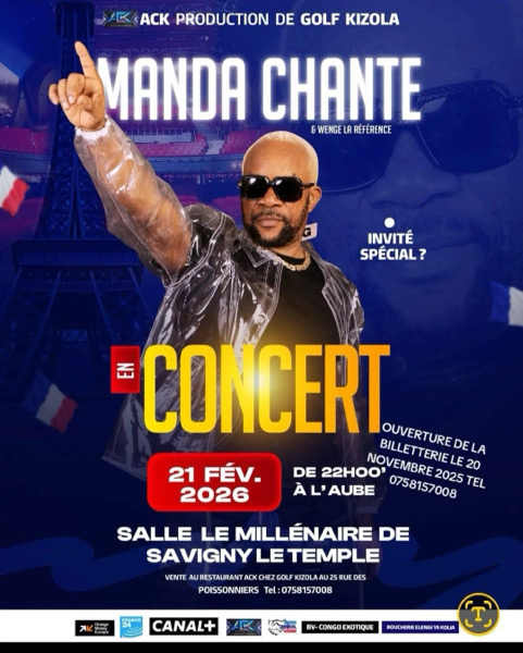 Le chanteur de charme Manda chante va se produire ce samedi 21 février 2026 à la salle Millénaire de Savigny le Temple dans la région parisienne. Au programme, de la pure rumba congolaise. Ne manquez pas.